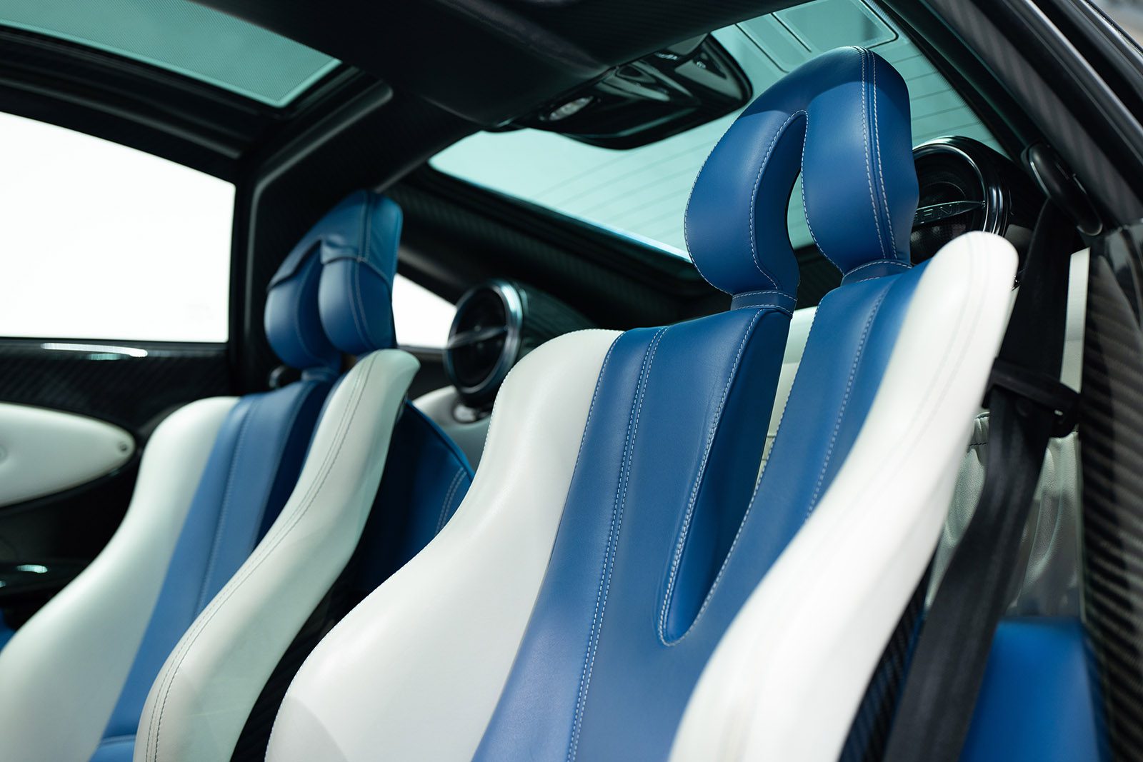 Der Innenraum spiegelt die Philosophie von Pagani in besonderer Weise wider. Hochwertige Materialien wie Leder, Carbon und gefrästes Aluminium werden mit größter Präzision verarbeitet. Jedes Detail ist bewusst gestaltet – von den Instrumenten bis zu den Bedienelementen.
